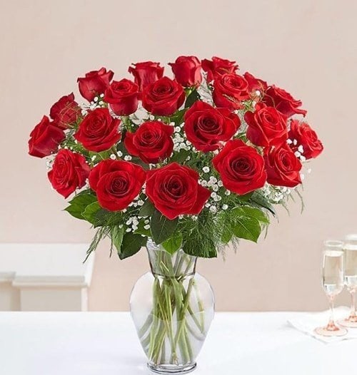 Silindir Cam Vazoda 25 Adet Kırmızı Gül