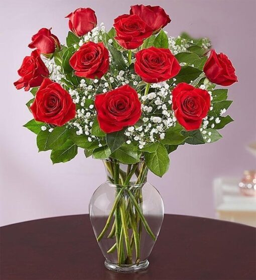 Kırmızı güllerden cam vazo içine dekoratif taşlar ve inci ile süslenmiş harika bir tasarım. Sizi çok seven sevgilinize gözlerini kamaştıracak şıklıkta bu gül aranjmanı harika olacaktır