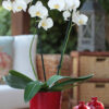 2 Köklü Kırmızı Vazosunda Beyaz Orkide Siparişi
