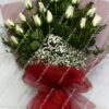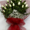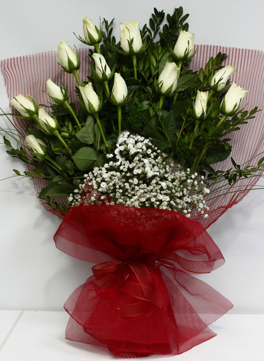 Kırmızı tül içinde 15 adet beyaz gül buketi. Birinci kalite beyaz güller ile hazırlanmış bu büyüleyici gül aranjmanı, sevdiklerinize hediye ederek onlara güzel bir sürpriz yapabilirsiniz.