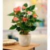 Dekoratif Ayaklı vazoda ve çok çarpıcı güzel çiçekleri güzel bir hediyedir. Orijinal bir tür olan bu bitkiler çok talep ediyorlar çünkü oda koşullarında yaşayan oldukça nadirdir bir bitkidir. Alt ve melez birçok türü olan bu çiçeklerdir. Büyük Flemengo Antorium bugün sevdikleriniz için güzel bir hediye ve ev bitkisi olarak uzun yıllar yaşar dinç yeşil, ok şeklinde yaprakları ve Orta, güçlü pembe, parlak çiçekleri vardır. Anthurium bitkileri parlak ve sıcak bir yeri tercih eder, ama lütfen doğrudan güneş ışığı maruz bırakmayın. Her zaman çiçeklidir. İdeal koşullarda, antoryum tüm yıl boyunca çiçek açar.