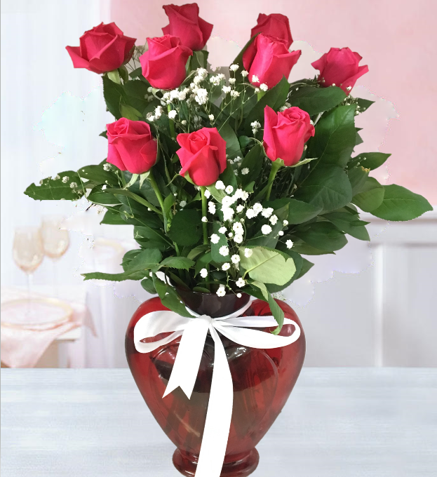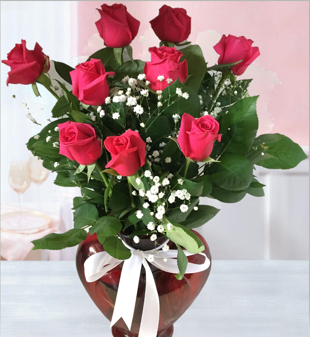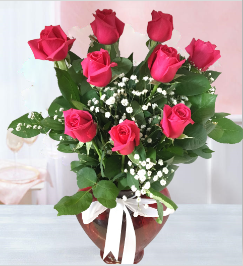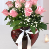 9 Pembe Gül Kalp Vazoda, Birinci sınıf kalitede çiçekler kullanılmaktadır.