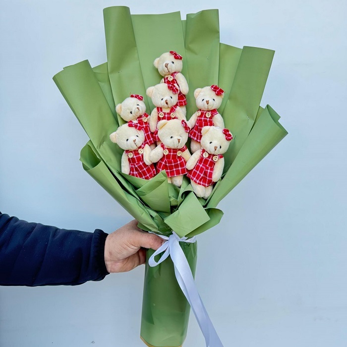 Kırmızı Etekli Ayıcık Buketi – 9’lu Özel Tasarım