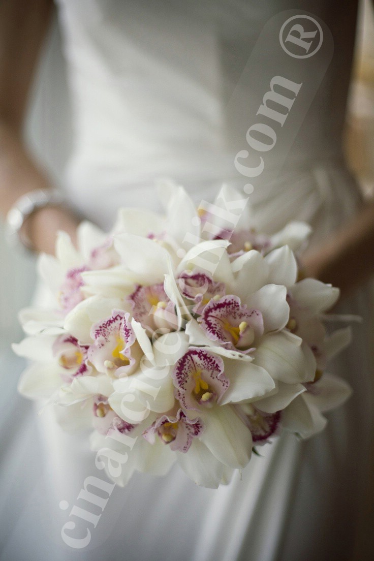 Güzel bir hayale hazır olun! Mutluluğu en saf hali ile sizlerin en özel günlerinizde yanınızda olmaktan mutluluk duyarız. Birinci sınıf beyaz orkide çiçekleri eşliğinde özel olarak hazırlanmış gelin buketi.