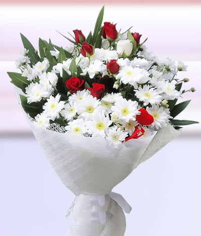‘Sevgi Yağmuru’ Papatya ve Kırmızı Gül Buketi